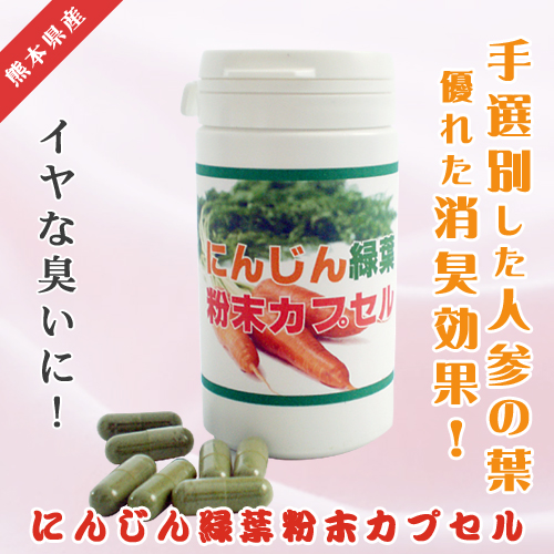 口臭・便の臭い・わきが・加齢臭など臭いが気になりませんか?しかも自分自信の体臭は気がつきにくく、無自覚のまま他人に迷惑をかけていることが多いこともあります。 体臭のイヤな臭いをもとから絶ってくれるのがニンジンの葉茶です!ニンジン緑葉は自然の素材で高い消臭効果を持つことが昔から言われています。 消臭作用の高いビタミンCを多く含んでいるので、ニンジン緑茶を飲めば、口臭、ワキガなどの臭いの原因となる物質を体の内側から消すことができます。 別の香りで体臭をごまかすのでなく、悪臭そのものを消し去ってくれるます!