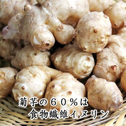 デンプンを主体とするイモ類とは異なり、デンプンはほとんど含まず、菊芋の60%はイヌリンという食物繊維です。